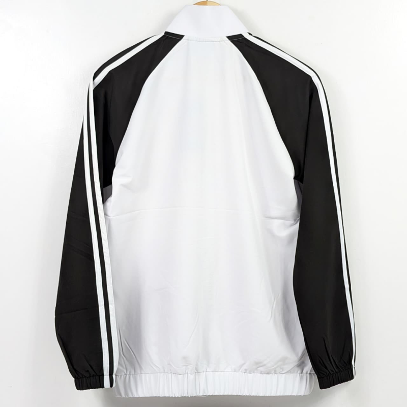Elevate your everyday style with the Adidas Casual Track Jacket, a timeless blend of sport and streetwear heritage. This jacket channels the legacy of Adidas with a crisp white body contrasted by bold black sleeves, accented by the iconic three-stripe design that runs from shoulder to wrist—a symbol of athletic excellence since the 1970s.